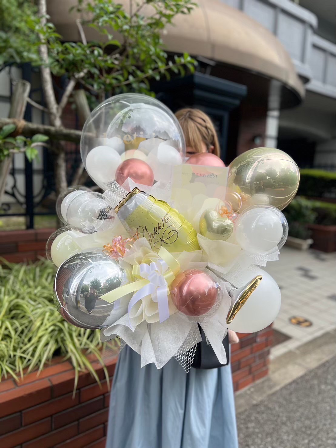 ナチュラルな色味のバルーンギフト。オープンお祝いや周年祝いにオススメです。