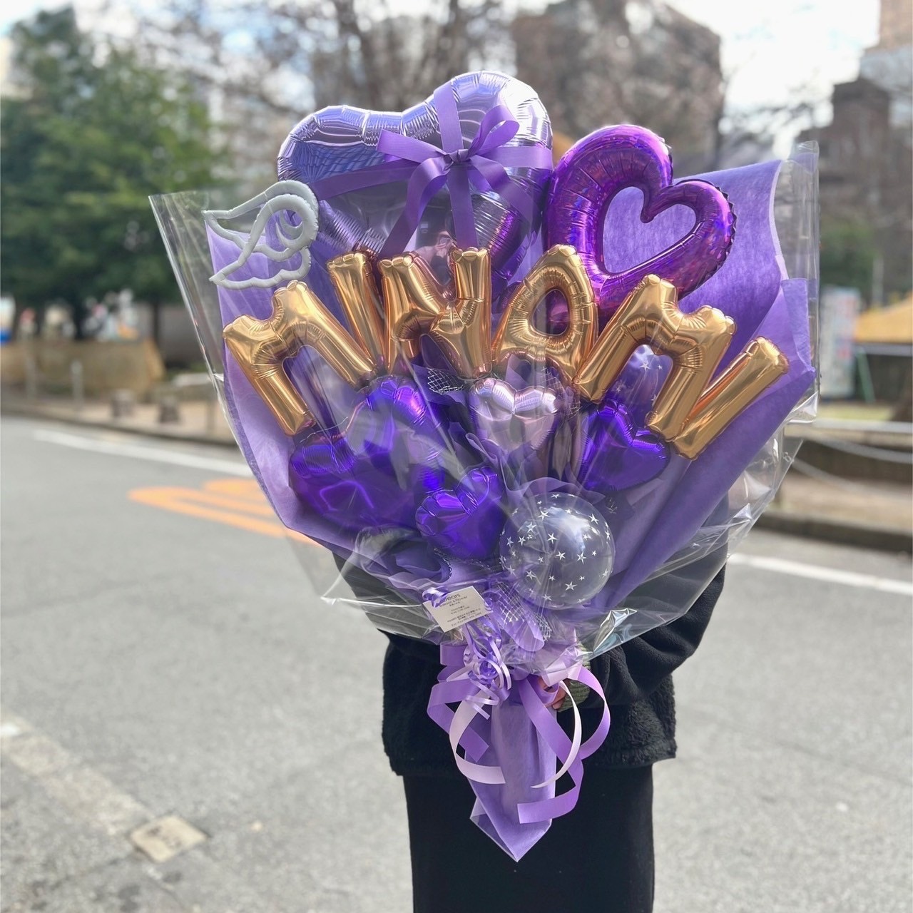 花束のような形になっている為、自立しません。アルファベットバルーンはお好きな文字に変更可能です○