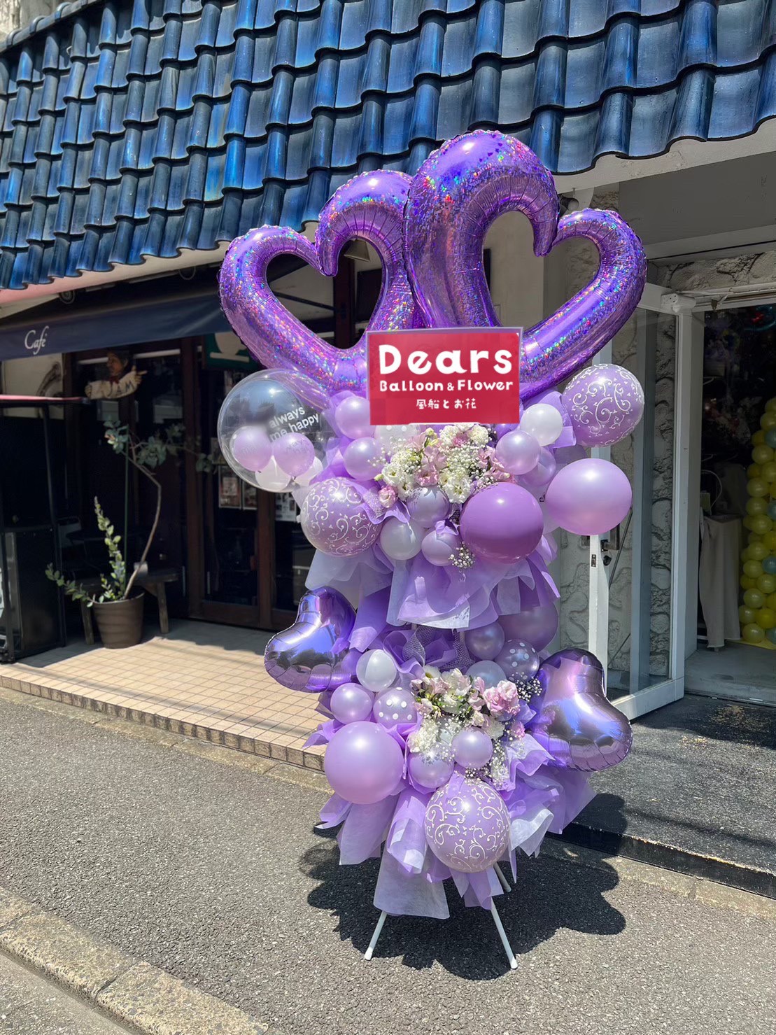 メンバーカラーのラベンダーメインの可愛いスタンド。クリアバルーンには好きな文字をお入れできます○