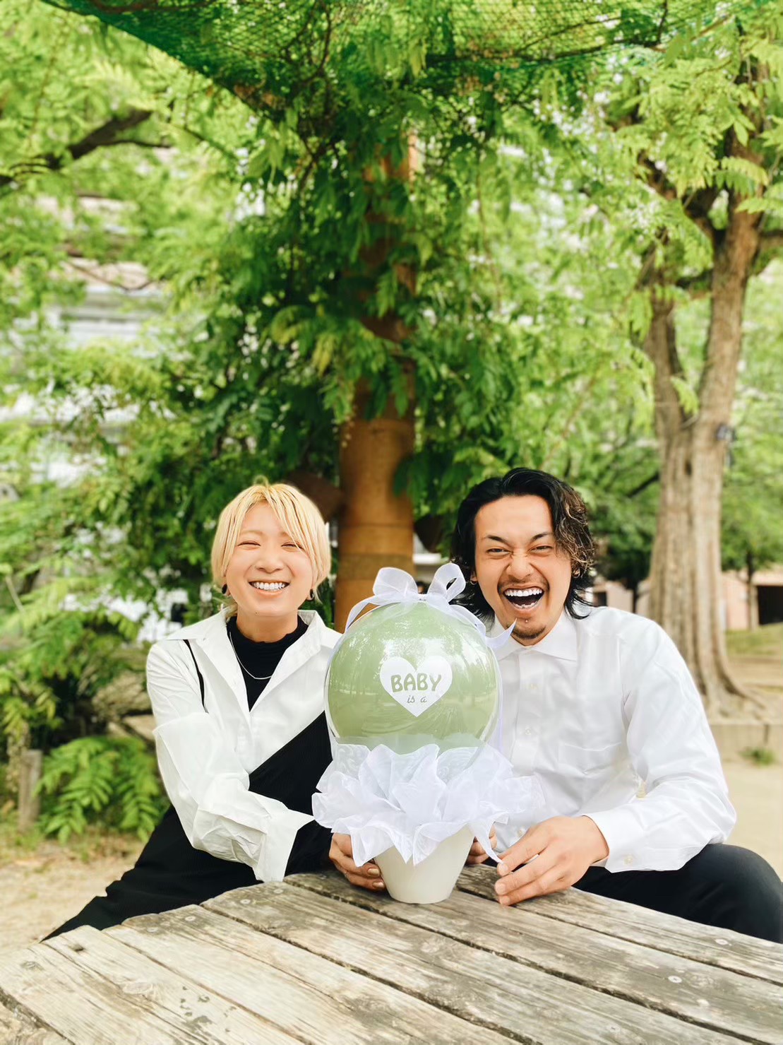 赤ちゃんの性別発表用サプライズバルーン。中身のお色はピンク系かブルー系からお選びいただけます。卓上タイプなので割った後に記念に飾ることも可能です。クリアバルーンの中で割れるので散らかる心配も無し!