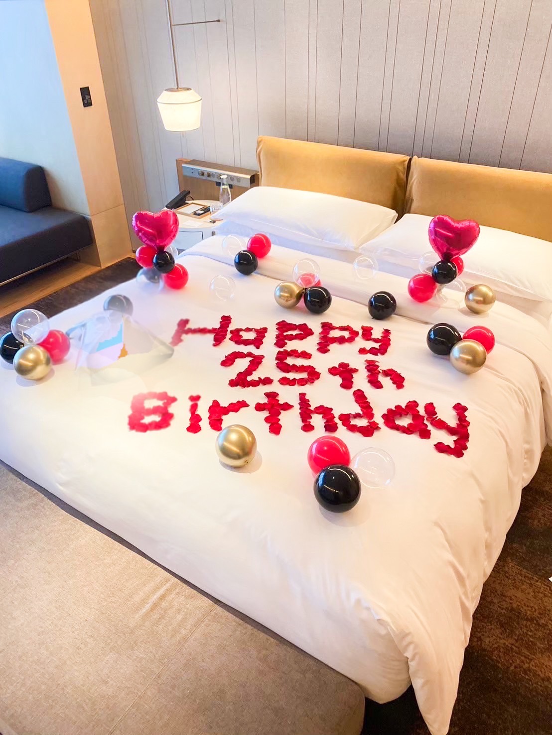 Happy Birthdayはバラの花びらで描いております!