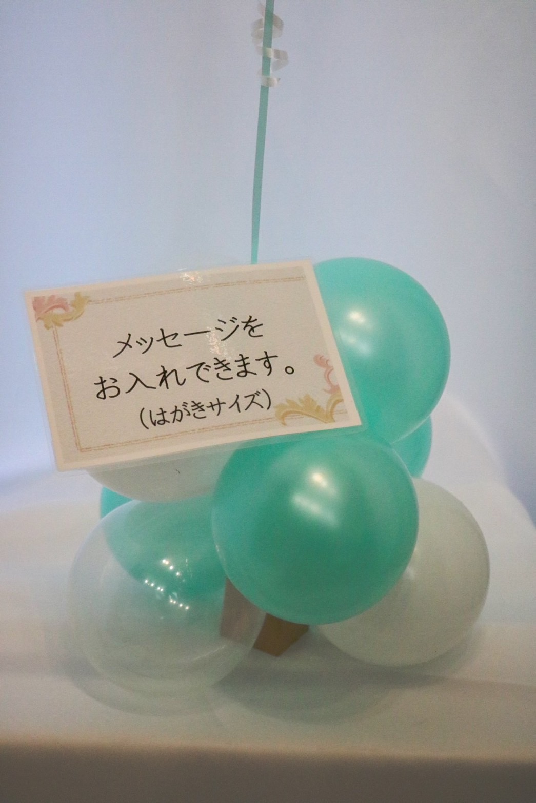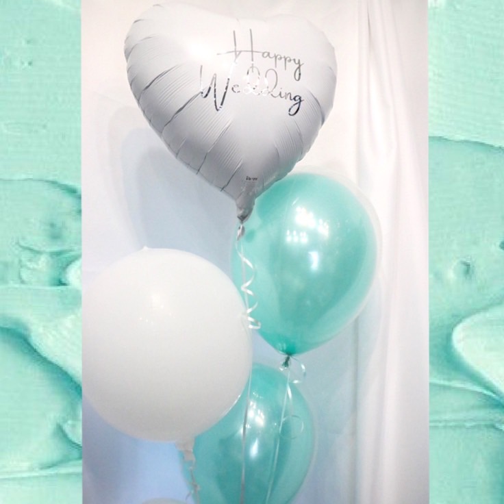 ウェディングドレスとタキシードを着た新郎新婦バルーン入りのバルーン電報